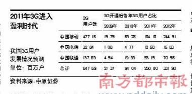 圖:我國(guó)3G用戶發(fā)展情況預(yù)測(cè)