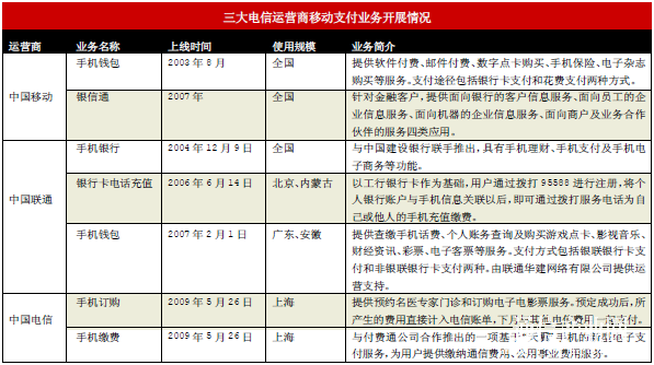 (三大電信運(yùn)營(yíng)商移動(dòng)支付業(yè)務(wù)開(kāi)展情況)