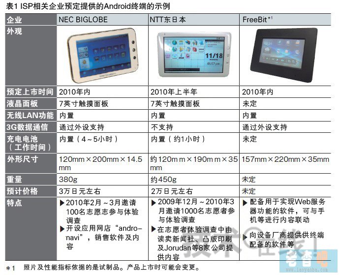有類似舉措的并非只有NEC BIGLOBE一家。以ISP相關企業(yè)為中心,通信運營商涉足Android終端業(yè)務的行動在2010年將不斷出現(xiàn)(表1)。