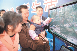 圖:孩子通過電信全球眼,看到了動物園里的熊貓寶寶。