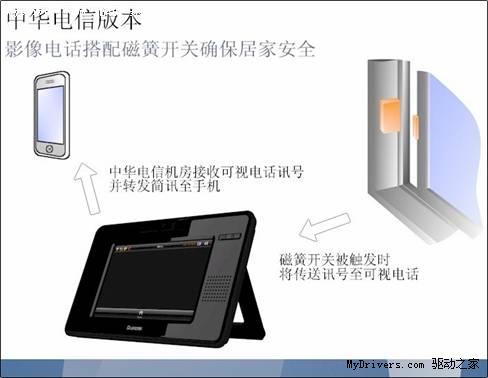 除多媒體服務(wù),AMOR8210內(nèi)建之千里眼服務(wù)更突破業(yè)界標(biāo)準使其與磁簧開關(guān)整合提供居家安全嶄新服務(wù)。當(dāng)磁簧開關(guān)被觸發(fā)告警時,AMOR8210攝影鏡頭將開啟錄像功能并上傳畫面且同步發(fā)送簡訊至行動電話通知使用者接著使用者可透過3G手機觀看錄像檔案或直接撥接AMOR8210進行實時監(jiān)控。