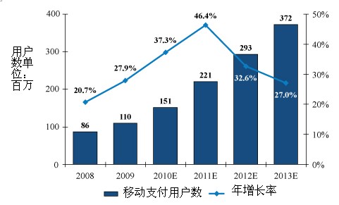 基于“中國計算機世界”的研究預測,中國移動支付用戶在2009年底達到1.1億,預計將在2013年超過3倍。由于需求大幅提高,電信運營商會繼續(xù)在每個省推出移動支付解決方案網絡。反過來,也會刺激第三方平臺和供應商的發(fā)展。