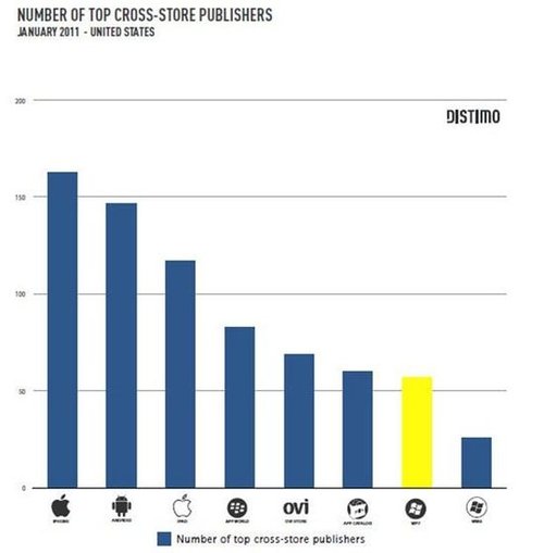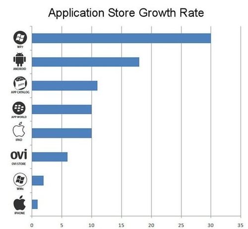 專注于App Store發(fā)展得研究者Distimo昨天公布了一份有關(guān)手機應用程序商店的市場報告,報告顯示W(wǎng)indows Phone 7的增長速度高達30%。