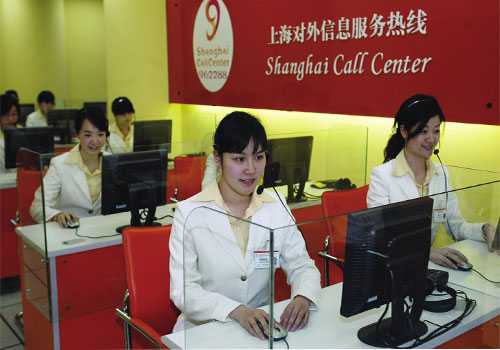 東方網(wǎng)5月1日消息:據(jù)《勞動報》報道,“Hello。ㄓ⒄Z:你好)”、“GutenTag(德語:你好)!”、“Bonjour(法語:你好)!”……這里就像個小小的聯(lián)合國,可以聽到15種語言;這里又像“女兒國”,接聽電話的都是80后的姑娘;這里就是上海對外信息服務(wù)熱線962288,365天、24小時接聽外籍人士的問詢電話。