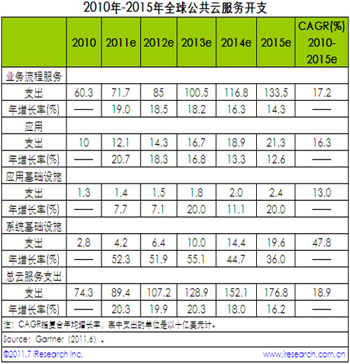 2015年全球公共云服務(wù)支出年均增長率將逼近20%