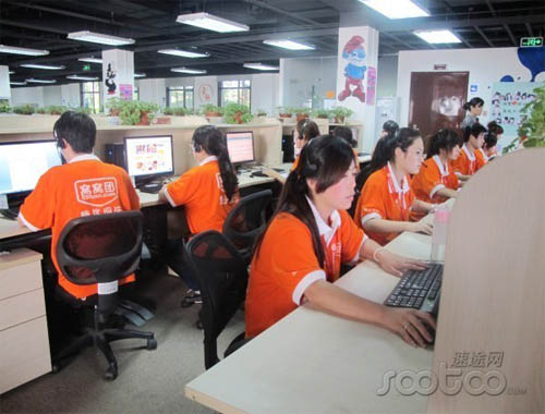 速途網(wǎng)在窩窩團(tuán)位于北美國(guó)際商務(wù)中心的呼叫中心看到,窩窩團(tuán)在線客服和call center以及論壇維護(hù)等部門在一層,而二層是劃分成商超、票務(wù)、親子麗人、中餐、旅游、甜品、生活?yuàn)蕵返炔块T的部分銷售團(tuán)隊(duì)。
