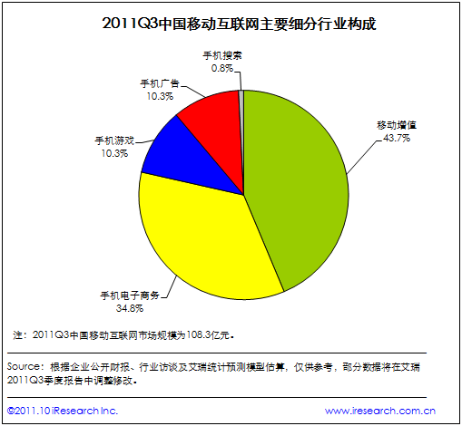 2011Q3中國移動互聯(lián)網(wǎng)市場規(guī)模達108.3億元