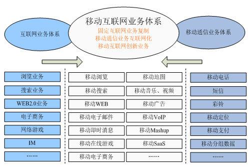 根據(jù)工信部相關(guān)信息,移動(dòng)互聯(lián)網(wǎng)的業(yè)務(wù)體系主要包括三大類(lèi),如下圖所示:一是固定互聯(lián)網(wǎng)的業(yè)務(wù)向移動(dòng)終端的復(fù)制,從而實(shí)現(xiàn)移動(dòng)互聯(lián)網(wǎng)與固定互聯(lián)網(wǎng)相似的業(yè)務(wù)體驗(yàn),這是移動(dòng)互聯(lián)網(wǎng)業(yè)務(wù)的基礎(chǔ)。二是移動(dòng)通信業(yè)務(wù)的互聯(lián)網(wǎng)化,如Skype推出的移動(dòng)VOIP業(yè)務(wù)、中國(guó)移動(dòng)的飛信業(yè)務(wù)等。三是結(jié)合移動(dòng)通信與互聯(lián)網(wǎng)功能而進(jìn)行的有別于固定互聯(lián)網(wǎng)的業(yè)務(wù)創(chuàng)新,這是移動(dòng)互聯(lián)網(wǎng)業(yè)務(wù)發(fā)展方向。對(duì)創(chuàng)業(yè)者而言,移動(dòng)互聯(lián)網(wǎng)的業(yè)務(wù)創(chuàng)新關(guān)鍵是如何將移動(dòng)通信的網(wǎng)絡(luò)能力與互聯(lián)網(wǎng)的網(wǎng)絡(luò)與應(yīng)用能力進(jìn)行聚合,從而創(chuàng)新出適合移動(dòng)終端的互聯(lián)網(wǎng)業(yè)務(wù),如移動(dòng)Web2.0業(yè)務(wù),如微博、移動(dòng)位置類(lèi)互聯(lián)網(wǎng)業(yè)務(wù)等。