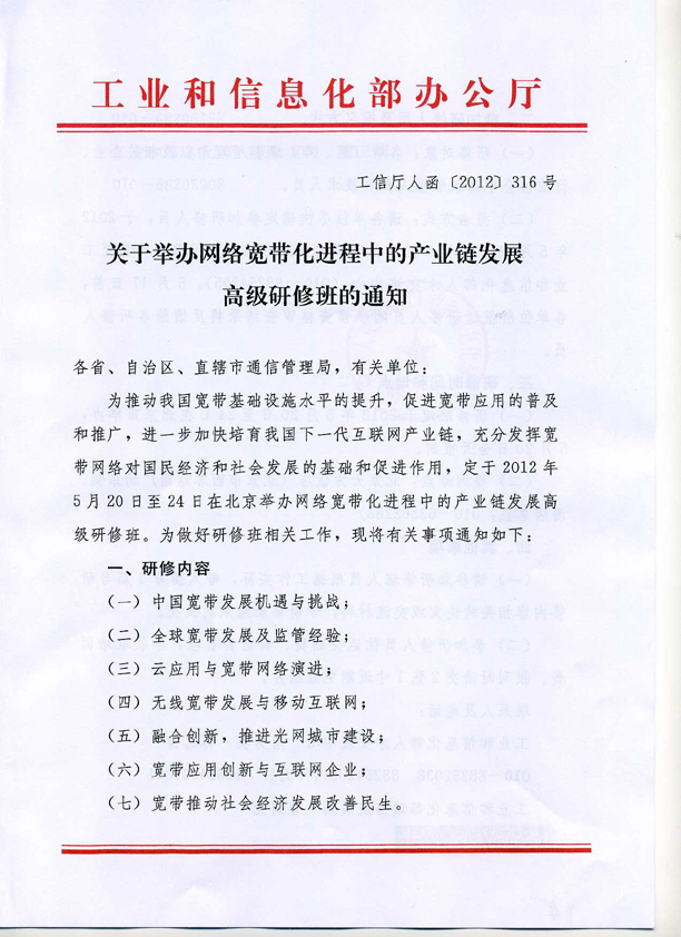 工信部:網(wǎng)絡(luò)寬帶化進程中的產(chǎn)業(yè)鏈發(fā)展高級研修班