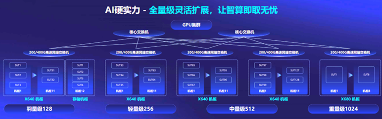 隨著算力成為稀缺資源,寧暢從客戶角度出發(fā),提供了“先享后付”的算力購買方案。目前,寧暢AI算力棧已開放免費(fèi)試用,現(xiàn)已有50+用戶預(yù)約試用。該算力棧是一個包括128臺GPU服務(wù)器的千卡級別算力集群,標(biāo)準(zhǔn)化智算中心建設(shè)方案囊括了羽量級128、輕量級256、中量級512、重量級1024四個等級,實(shí)現(xiàn)全量級靈活擴(kuò)展,給了用戶極大選擇空間。用戶可在試用中嘗試不同的業(yè)務(wù)組合、方案框架,以便找到“最優(yōu)性價(jià)比”的智算中心建設(shè)方案。