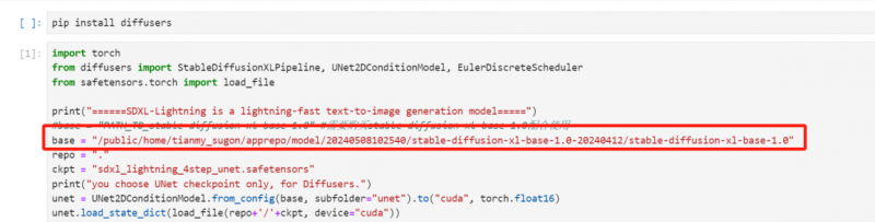 第三步,商城首頁(yè)中選擇 SDXL-Lighting 系列模型商品,免費(fèi)購(gòu)買(mǎi)后點(diǎn)擊“一鍵試用”。進(jìn)入notebook頁(yè)面后選擇“Python3.9”內(nèi)核,將第二步復(fù)制路徑粘貼到代碼的 base 變量中,點(diǎn)擊保存。
