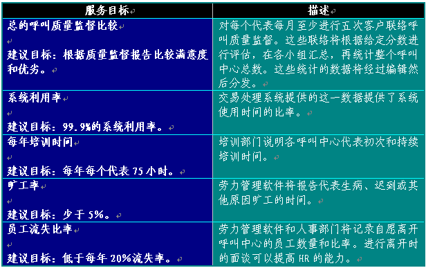 附錄3舉出了完整的衡量標(biāo)準(zhǔn)。這些工作評估標(biāo)準(zhǔn)可以通過各種辦法獲得,包括ACD、IVR、客戶關(guān)系管理(CSM)軟件和質(zhì)量監(jiān)督及勞力管理報告。