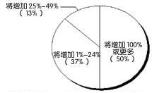 調(diào)查結(jié)果顯示,明年通信提供商的CRM支出仍將迅速增長(zhǎng)。80%的被調(diào)查者表示將增加對(duì)CRM方案的支出,10%的被調(diào)查者稱(chēng)CRM預(yù)算將保持不變,另有10%的被調(diào)查者不知道CRM支出會(huì)如何變化。在80%計(jì)劃增加CRM支出的被調(diào)查者中,半數(shù)的CRM支出將增加100%或更多。另外13%的支出增長(zhǎng)在25%~49%之間。37%的被調(diào)查者將增加1%~24%的支出(見(jiàn)圖1)。