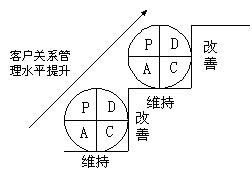 容,而PDCA環(huán)在客戶關系管理中不斷循環(huán)的結(jié)果就是企業(yè)客戶關系管理水平的不斷推進,這個過程可以用上圖表示。 |
