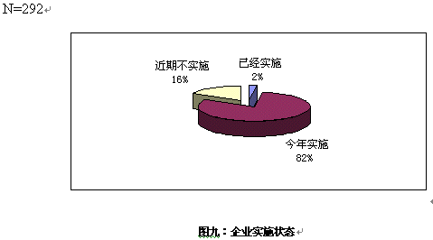 對(duì)大多數(shù)企業(yè)來(lái)說(shuō),對(duì)CRM還處于關(guān)注階段,只有7家企業(yè)表示已經(jīng)開(kāi)始實(shí)施,在的電話訪問(wèn)中,了解到這7家企業(yè)的實(shí)施的主要是在渠道管理和客戶呼叫中心等方面,但表示今年會(huì)開(kāi)始實(shí)施的卻超過(guò)8成。