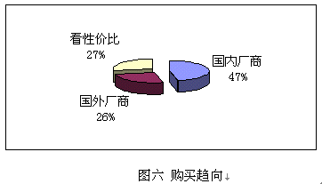 鑒于國(guó)內(nèi)并沒(méi)有知名度很高的CRM實(shí)施廠商,而國(guó)外的著名廠商在國(guó)內(nèi)的品牌宣傳也不足,所以調(diào)查表中只設(shè)了:國(guó)內(nèi)廠商、國(guó)外廠商和根據(jù)性?xún)r(jià)比進(jìn)行選擇三個(gè)項(xiàng)目,與購(gòu)買(mǎi)能力對(duì)照,預(yù)期實(shí)施金額在100萬(wàn)以下的企業(yè),一般側(cè)重國(guó)內(nèi)廠商,而實(shí)施金額在100萬(wàn)以上企業(yè)則側(cè)重國(guó)外企業(yè)。
