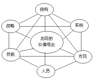 許多管理學(xué)文獻(xiàn)都強(qiáng)調(diào)硬要素。一個(gè)成功的公司,就在于制定適當(dāng)?shù)膽?zhàn)略以達(dá)到其目標(biāo),建立適當(dāng)?shù)慕M織結(jié)構(gòu)以貫徹戰(zhàn)略,并裝備具有有效信息系統(tǒng)、計(jì)劃系統(tǒng)、控制系統(tǒng)和獎(jiǎng)勵(lì)制度的組織以完成各項(xiàng)工作。其關(guān)鍵性的觀念為:出發(fā)點(diǎn)是戰(zhàn)略,而不是結(jié)構(gòu)。公司首先應(yīng)該決定今后往那里走,其次是發(fā)展一個(gè)組織結(jié)構(gòu)和系統(tǒng)來(lái)貫徹執(zhí)行。