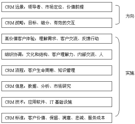 對于大多數(shù)公司而言,一個(gè)產(chǎn)品戰(zhàn)略很好理解。但是CRM戰(zhàn)略卻不太讓人理解。這是因?yàn)樵贑RM產(chǎn)業(yè)界、學(xué)術(shù)界對"CRM是什么"、"CRM戰(zhàn)略由什么組成"還沒有達(dá)成共識。因此,以下所闡述的CRM戰(zhàn)略并不一定勝人一籌,但我們會(huì)努力全面論述CRM戰(zhàn)略框架。我們認(rèn)為一個(gè)CRM戰(zhàn)略必須包括以下幾個(gè)內(nèi)容:定義價(jià)值前提、定義客戶戰(zhàn)略、企業(yè)變革計(jì)劃。