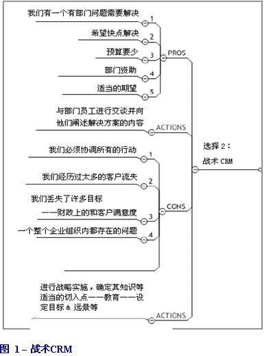 換言之,它是一種戰(zhàn)術(shù)性的還是戰(zhàn)略性的需求?許多企業(yè)喜歡在一段時間內(nèi)解決某個問題或困難。然而這種戰(zhàn)術(shù)性的方式很難為企業(yè)帶來競爭上的優(yōu)勢,盡管它有可能會改善部門的效率。究竟我們要在CRM之路上走多遠?想要知道答案的話可以看一下圖1。從頭開始,問問自己:它是一個具有明確定義和目標范圍的部門需求嗎?如果真是這樣,那么預算也應該相當有限,因為其它業(yè)務部門決不會遷就。然而你很可能會發(fā)現(xiàn)你的部門問題就是企業(yè)與客戶及市場脫離的征兆。如果情況的確如此,那么你就要好好地努力深化CRM并取得更為廣泛的支持——尤其是CEO,因為你有許多關(guān)于客戶選擇的問題要有賴于他。