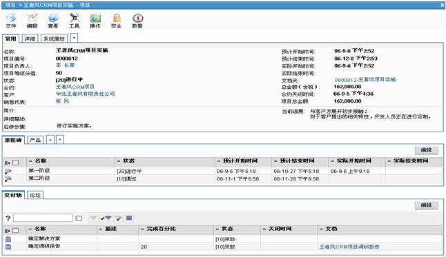 VamCRM提供專業(yè)的項(xiàng)目管理模塊,支持項(xiàng)目范圍管理、時(shí)間管理、資源管理、質(zhì)量管理、成本管理。支持以銷售合約為驅(qū)動、過程清晰、全程受控的項(xiàng)目管理方式為客戶交付產(chǎn)品和服務(wù)。VamCRM融入成熟的項(xiàng)目管理方法和成功的實(shí)踐經(jīng)驗(yàn),從整體上對項(xiàng)目進(jìn)行規(guī)劃、組織、執(zhí)行、控制,使企業(yè)可以更加優(yōu)質(zhì)地為客戶提供長期的服務(wù)。項(xiàng)目創(chuàng)建后,VamCRM系統(tǒng)會自動生成一個(gè)與當(dāng)前項(xiàng)目相匹配的文件夾,為項(xiàng)目執(zhí)行過程中產(chǎn)生的交付物或項(xiàng)目的有關(guān)文檔提供統(tǒng)一的存檔位置;項(xiàng)目全程融合項(xiàng)目管理的方法,分里程碑管理項(xiàng)目活動和交付物,實(shí)時(shí)統(tǒng)計(jì)項(xiàng)目的關(guān)鍵數(shù)據(jù),并且里程碑及所屬活動和交付物等都可分狀態(tài)量化標(biāo)識,對項(xiàng)目進(jìn)展做到實(shí)時(shí)監(jiān)控,避免了在項(xiàng)目實(shí)施中的“救火”行動和盲目發(fā)展。也可自動關(guān)聯(lián)記錄并統(tǒng)計(jì)所有項(xiàng)目進(jìn)展過程中發(fā)生的預(yù)算與費(fèi)用,實(shí)現(xiàn)項(xiàng)目費(fèi)用清晰可控。伴隨著項(xiàng)目的進(jìn)程,可以記錄所有在項(xiàng)目執(zhí)行過程中相關(guān)的聯(lián)系人、文檔、備忘錄等數(shù)據(jù),形成完整的項(xiàng)目內(nèi)容集合。項(xiàng)目中還包括基于項(xiàng)目的論壇,供項(xiàng)目組成員就項(xiàng)目的相關(guān)問題進(jìn)行在線交流,同時(shí),項(xiàng)目管理全程與企業(yè)高效協(xié)同的業(yè)務(wù)流程無縫集成,能夠使企業(yè)的相關(guān)部門以項(xiàng)目為導(dǎo)向,集中所有資源高效協(xié)同服務(wù),大大降低項(xiàng)目執(zhí)行風(fēng)險(xiǎn)。