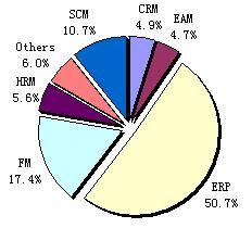 賽迪顧問定義的管理軟件市場包括財務(wù)管理軟件、ERP軟件、CRM軟件、SCM軟件、HRM軟件、EAM軟件等細(xì)分產(chǎn)品市場。2006年ERP軟件銷售額已經(jīng)獨占50.7%的比例,但是在增長率方面,對人力資源管理、激勵制度、績效考核等規(guī)范化需求的上升使HRM軟件同比增長了26.1%;對銷售、客戶資源的精細(xì)化管理帶來CRM軟件25.7%的同比增長率;另外,一個值得關(guān)注的亮點是EAM軟件比去年同期增長了24.8%,增長的主要動因來源于EAM軟件應(yīng)用從電力行業(yè)向其它資產(chǎn)密集型行業(yè),包括能源、精密制造、公共事業(yè)等領(lǐng)域的迅速滲透。這三類產(chǎn)品的較快增長反映了一個有趣的特點是:這三類產(chǎn)品都是基于關(guān)系的管理,包括客戶關(guān)系、供應(yīng)商關(guān)系、員工關(guān)系,這表明企業(yè)用戶正試圖從不同角色的關(guān)系理順、定位清楚、聯(lián)系強(qiáng)化中尋求管理的改進(jìn)。雖然這個特點僅僅是從不同產(chǎn)品線的銷售趨向透示出的,但實際上它表達(dá)了用戶對于流程規(guī)范、精細(xì)管理的愿望。