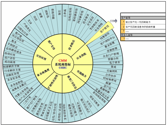 CMM體系中的標準并非在每一次評估中都需要用的,它實際上是一個滿足大部分CRM評估的標準的合集。所以應(yīng)用者首先要自己或者借助評估顧問來選擇CMM指標范圍,確定哪些指標參與此次評估。