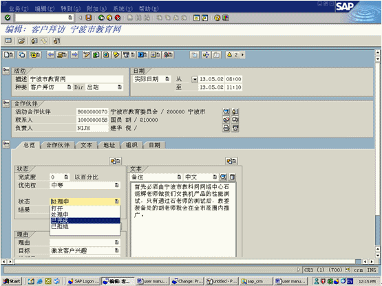 Explorer的層級樹結(jié)構(gòu)顯示客戶間的業(yè)務(wù)關(guān)系。通過報價菜單選項中預(yù)定義報價信息使用訂單輸入功能?梢赞D(zhuǎn)化成為訂單,后臺功能與SAPR/3集成可以實現(xiàn)。