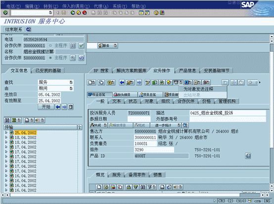 客戶服務(wù)功能包括記錄抱怨相關(guān)的事件信息或錯誤描述概況。資源規(guī)劃工具允許用戶察看事件相關(guān)的員工和資源的可用性,F(xiàn)場服務(wù)功能可以通過與可以使用WAP的設(shè)備、Palm、Pilot、PAQ