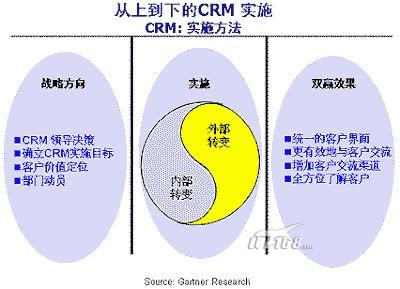 整個實施過程包含多個步驟,實施可以協(xié)助企業(yè)決策層推進CRM應用,完成企業(yè)的轉變。實施的成果即是在企業(yè)內部完成傳播和推進“以客戶為中心”的管理思想,并將這一思想落實在企業(yè)具體的工作環(huán)節(jié)中,實現(xiàn)企業(yè)客戶關系管理能力及全面競爭能力提升。