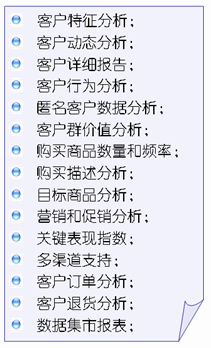 IQ等主流數(shù)據(jù)倉庫系統(tǒng)的無縫銜接,實(shí)現(xiàn)了CRM最核心的價值——多維度的客戶分析,從而在技術(shù)上和應(yīng)用上遠(yuǎn)遠(yuǎn)超越了傳統(tǒng)的CRM。