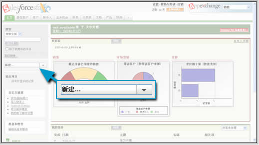 Salesfoce的關(guān)鍵字查詢框位置基本固定,應(yīng)用上比較方便。它的特點(diǎn)是同時(shí)支持客戶、聯(lián)系人、潛在客戶、合同等關(guān)鍵字的查詢,在三種軟件中,Salesforce是唯一提供該功能的。