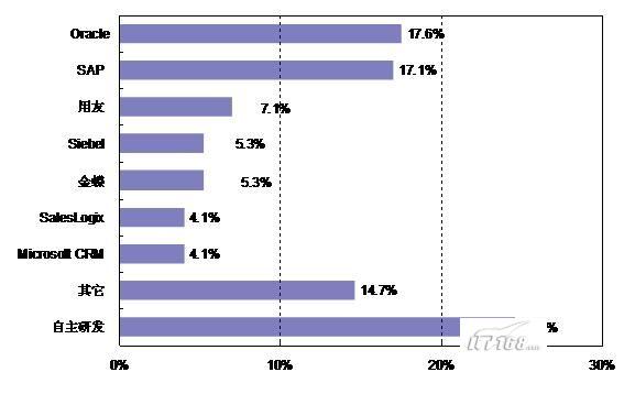 圖 17 2007年企業(yè)所應用CRM系統(tǒng)的軟件品牌分布狀況