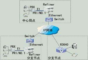 對于大多數(shù)的企業(yè)用戶,都擁有自己的用戶交換機PBX。在進行IP電話網(wǎng)的建設中,這些PBX將被保留,繼續(xù)承擔起用戶接入的功能。而這些PBX之間的中繼連接都將通過IP骨干網(wǎng)來完成。這樣,既可以節(jié)約價格不菲的長途中繼租用費,也避免了大規(guī)模的改造所帶來的浪費。