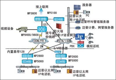 該方案中,整個網(wǎng)絡(luò)構(gòu)建基本上在原有網(wǎng)絡(luò)基礎(chǔ)之上進(jìn)行搭建,沒有影響到原有網(wǎng)絡(luò)的重建,同時還充分利用了原有的路由IP功能,優(yōu)化了網(wǎng)絡(luò)結(jié)構(gòu)。邁普IP語音設(shè)備完全遵循H.323標(biāo)準(zhǔn)設(shè)計,可以完全同其它標(biāo)準(zhǔn)設(shè)備廠商兼容,如Cisco以太網(wǎng)電話機(jī)、路由器IP語音模塊等。為了充分保證用戶投資,設(shè)計時充分考慮前向兼容已有產(chǎn)品(如路由器IP語音模塊),后向兼容未來產(chǎn)品(如邁普高密度語音網(wǎng)關(guān)、邁普以太網(wǎng)電話機(jī)等)。該方案有高效的成本控制能力,MyPower