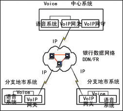 語音聯(lián)網(wǎng)可以由多個(gè)地市系統(tǒng)組成,同時(shí)可以將Voice Over IP聯(lián)網(wǎng)的關(guān)守設(shè)立在中心系統(tǒng)或其中的某一個(gè)地市,地市之間的語音聯(lián)網(wǎng)的數(shù)據(jù)通道可以利用銀行現(xiàn)有的數(shù)據(jù)網(wǎng)絡(luò)來支持,并根據(jù)需要分配帶寬。