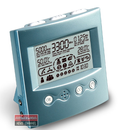 這個(gè)裝置,其實(shí)是一項(xiàng)早期工具的衍生產(chǎn)品。早在2004年,這個(gè)具有獨(dú)立顯示屏的小東西被開發(fā)出來(lái),用以控制電腦的超頻設(shè)定并監(jiān)控系統(tǒng)的效能。現(xiàn)在這個(gè)在下周起于各大通路都買得到的新機(jī)種已納入Skype話務(wù)管理功能,使用者可直接把頭戴式耳機(jī)接到這個(gè)小時(shí)鐘上,one-touch輕輕一按,便可立即進(jìn)行接通電話、速簡(jiǎn)撥號(hào)及電話會(huì)議。