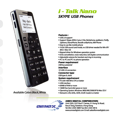 AMEX推出新款賦有Nano風(fēng)格的VoIP手機(jī)