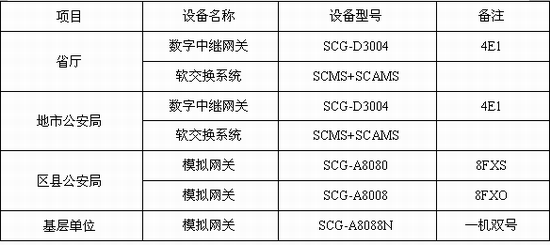 在區(qū)縣局,可采用數字E1中繼網關SCG-D3004或采用模擬語音網關(SCG-A8000);當話務量不是很高時,可采用模擬語音網關與用戶原有的