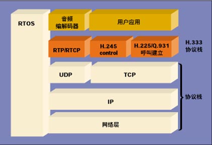 Q.931/H.225流程包括呼叫建立和拆除。圖1表示一個完整的H.323協(xié)議棧的實現(xiàn)。值得指出的是,該實現(xiàn)依賴于網絡協(xié)議棧和實時操作系統(tǒng)(RTOS)。多數應用系統(tǒng)需要RTOS以便同時處理多個流程和/或呼叫。