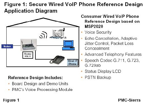 PMC-Sierra的MSP2020是VoIP電話參考平臺(tái)的基礎(chǔ),可以使具備安全特性的VoIP產(chǎn)品在價(jià)格和性能上都達(dá)到新的高度。MSP2020不需要單獨(dú)的處理器、語(yǔ)音處理DSP、安全芯片以及多個(gè)以太網(wǎng)MAC,其全集成式設(shè)計(jì)簡(jiǎn)化了電話設(shè)計(jì)復(fù)雜性,使整個(gè)產(chǎn)品成本(BOM)減少,可以讓OEM與服務(wù)提供商迅速向市場(chǎng)提供差異化VoIP電話產(chǎn)品。
