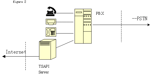 2、TSAPI技術(shù)標(biāo)準(zhǔn):由Novell公司開(kāi)發(fā)。它將程控交換機(jī)或中央電話系統(tǒng)與Netware網(wǎng)絡(luò)集成在一起?梢詫(shí)現(xiàn)呼叫轉(zhuǎn)移,交互式語(yǔ)音(IVR)和自動(dòng)呼叫分配(ACD)等功能。支持包括Windows各種版本、OS/2和Unix等目前主要操作系統(tǒng)。不同于TAPI ,TSAPI在計(jì)算機(jī)和桌面之間建立一個(gè)邏輯的連接,通過(guò)這些連接在任一端的TSAPI應(yīng)用就可以完成呼叫控制。由于TSAPI主要為Netware網(wǎng)操作系統(tǒng)增加電話服務(wù),不在每個(gè)電話和PC之間建立直接的連接,而是由一個(gè)電話服務(wù)器Netware可加載模塊(NLM)、一個(gè)電話服務(wù)器API(TSAPI)、一個(gè)電話服務(wù)器庫(kù)和一個(gè)電話客戶庫(kù)組組成在服務(wù)器電話系統(tǒng)間建立的連接,因此這個(gè)連接也稱(chēng)為PBX-To-Server連接。電話服務(wù)器 NLM是負(fù)責(zé) PBX和 Netware服務(wù)器間傳送信息的。電話服務(wù)器 API是為運(yùn)行于服務(wù)器上的應(yīng)用提供電話服務(wù)器API。三方連接在客戶--服務(wù)器組網(wǎng)中比單方連接有更大的靈活性。網(wǎng)上的每個(gè)用戶都可迅速地通過(guò)現(xiàn)有的LAN基礎(chǔ)結(jié)構(gòu)撥入PBX。對(duì)其他服務(wù)的接入,如主機(jī)或終端仿真、傳真、E-mail等,都可以通過(guò)CTI接口獲得,只要這些業(yè)務(wù)已經(jīng)存在于網(wǎng)上。結(jié)構(gòu)如圖: