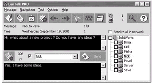 像ICQ、OICQ、MSN Messenger等即時通訊軟件必須登錄Internet后才能使用,并不支持局域網(wǎng),而LanTalk Pro是一款局域網(wǎng)即時通訊的專用軟件,通過它你可以快速、方便地與同一局域網(wǎng)中的任何人進行實時交流。