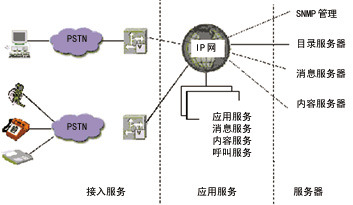 數(shù)據(jù)交換技術(shù)的發(fā)展使IP逐漸成為數(shù)字、語音等各種信息服務(wù)的網(wǎng)絡(luò)基礎(chǔ)標(biāo)準(zhǔn)。各種基于IP傳送話音、視頻的技術(shù)標(biāo)準(zhǔn)(如SGCP、VoIP等)也不斷提出并迅速統(tǒng)一。那么,基于IP的統(tǒng)一消息方案由兩部分組成:通用信息接收箱功能模塊和通用連接手段。通用信息接收箱功能模塊用于把所有形式的消息,如傳真、話音郵件、電子郵件等集成到一個IP網(wǎng)上的通用接收箱,用來提供給用戶一個公共平臺,來管理所有的消息。通用連接手段允許用戶通過電話網(wǎng)、DSL網(wǎng)、有線電視網(wǎng)和無線網(wǎng),使用電話、PC、電子郵件客戶設(shè)備、Web瀏覽器、無線手持設(shè)備和PDA訪問通用信息接收箱。