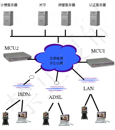 H.323協(xié)議的視訊平臺包括兩個層面:視訊交換網(wǎng)絡和運營支撐網(wǎng)絡。視訊交換網(wǎng)絡包括MCU、Gatekeeper、Gateway、終端等。運營支撐網(wǎng)絡包括網(wǎng)絡管理系統(tǒng)、認證計費系統(tǒng)、資源管理系統(tǒng)、會議控制系統(tǒng)、用戶管理系統(tǒng)、客戶服務系統(tǒng)等。