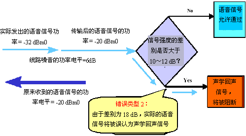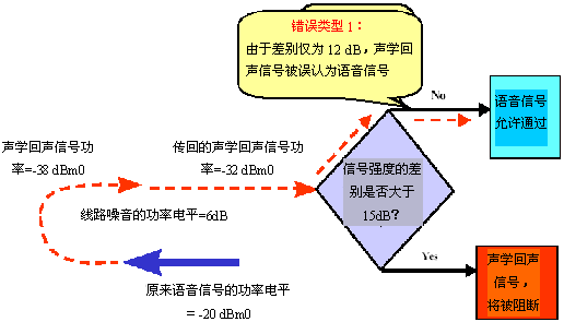 當(dāng)通信鏈路的的另一端被設(shè)計(jì)為傳輸可變強(qiáng)度的信號(hào)時(shí),"錯(cuò)誤類型1"的影響會(huì)急劇增大。在這種情況下,根據(jù)功率電平的絕對(duì)差異來(lái)決定阻斷/允許信號(hào)的聲學(xué)回聲控制器會(huì)增大"錯(cuò)誤類型1"出現(xiàn)的可能性。也就是說(shuō),使用絕對(duì)功率電平差異時(shí),將聲學(xué)回聲信號(hào)誤認(rèn)為有效語(yǔ)音信號(hào)的概率很大。