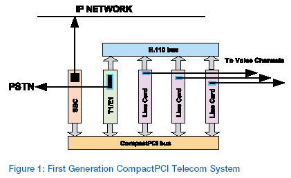 CompactPCI總線是中斷驅(qū)動(dòng)的,并且提供了對(duì)附屬CompactPCI外圍串行卡的確定性的控制。TDM,H.110數(shù)據(jù)總線為各個(gè)數(shù)據(jù)傳輸分配時(shí)隙。這種低時(shí)延的總線為實(shí)時(shí)應(yīng)用提供了優(yōu)異的性能。一個(gè)IP網(wǎng)絡(luò)(以太網(wǎng))接口能起到管理接入點(diǎn)或電信系統(tǒng)的管理點(diǎn)的作用。這樣的系統(tǒng)或許可以用作基本的計(jì)算機(jī)電話應(yīng)用,例如商用PBX。另外,IP接口可能被用作接入新的增值業(yè)務(wù)。