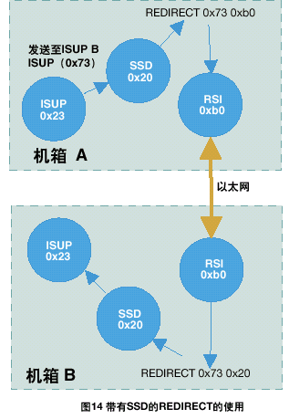 運(yùn)行在信令卡上的協(xié)議模塊,接收端(對(duì)方)的REDIRECT語(yǔ)句應(yīng)該通過(guò)ssd或ssds驅(qū)動(dòng)(通常情況下module_id為0x20)來(lái)對(duì)訊息進(jìn)行重定向,如圖14所示。