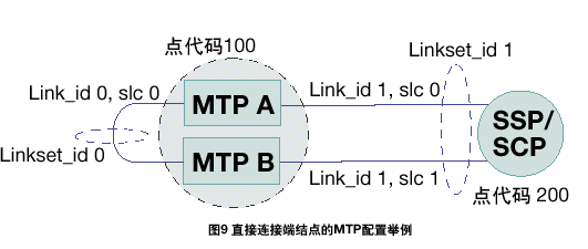 MTP A和MTP B之間的鏈路集的設(shè)置方法與任何其它SS7鏈路和鏈路集相同。如果有額外的數(shù)據(jù)設(shè)置表明此鏈路與其它連接相鄰節(jié)點(diǎn)的鏈路不同,則應(yīng)區(qū)別對(duì)待。