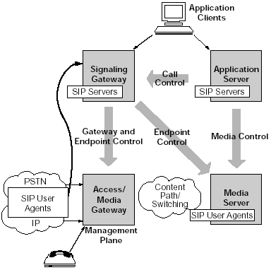許多語音服務(wù)都是由媒體服務(wù)器提供的。例如,一個客戶給某個電子商務(wù)網(wǎng)站打電話會被接到一個自動語音應(yīng)答(IVR)上或者自動總機(jī)上。這些應(yīng)用使用了語音,語音識別和音頻等功能,都是運(yùn)行在媒體服務(wù)器上的。在下一代網(wǎng)絡(luò)的實現(xiàn)中,媒體服務(wù)器就象是另一個電話(或者說,一個SIP的終端)。因此,他們可以享受和用戶一樣的SIP的優(yōu)點。