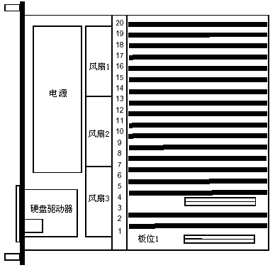 DSC210機(jī)箱包括具有20個(gè)插槽的無源主板,同時(shí)還有一個(gè)電源模塊、軟盤驅(qū)動(dòng)器、風(fēng)扇電源分配器、錯(cuò)誤檢測(cè)模塊和一個(gè)前面板顯示卡。